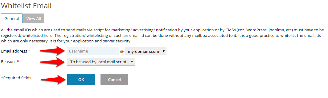 Enter the email ID you wish to register, select the reason from the drop down list and click on OK.